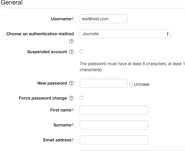 The user is created on Moodle side but it's just missing all fields except for the username. Even the email field is missing.