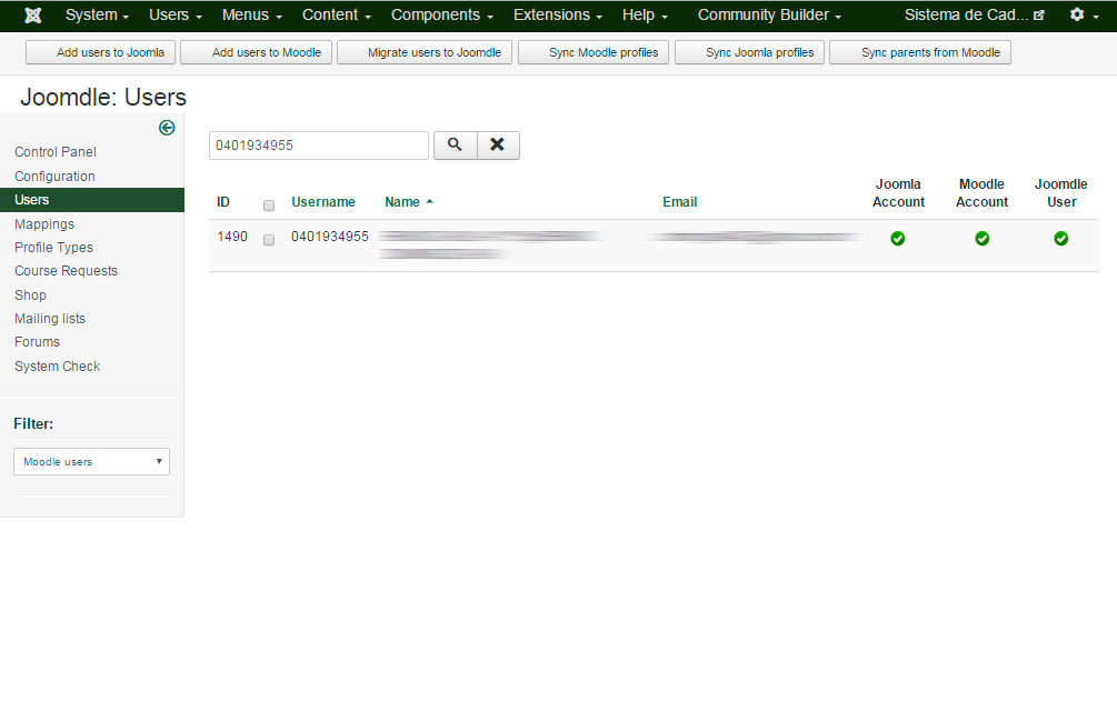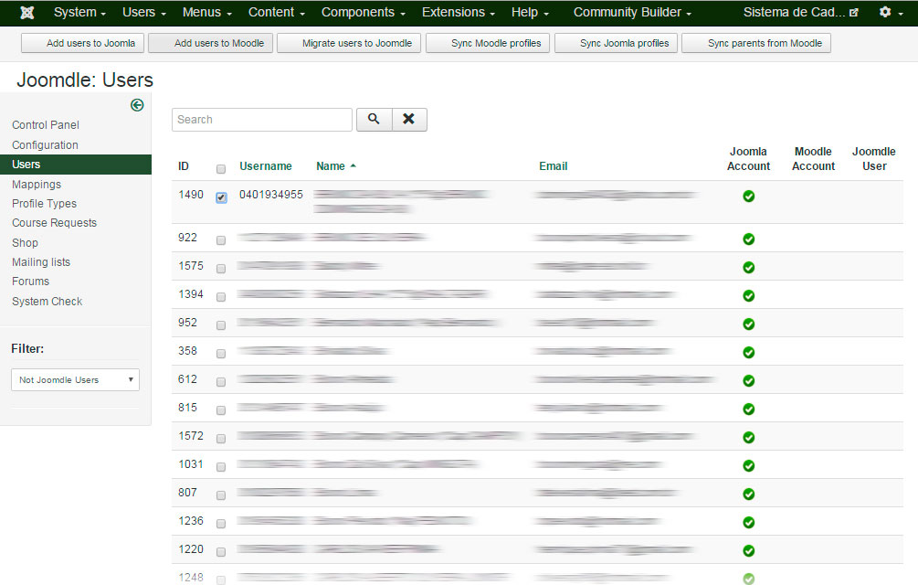 1- In the first screenshot you can see an user, for example, who is listed as NOT JOOMDLE.