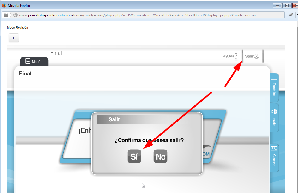 PRECISO: Lo que busco es que al salir de un curso, en este caso un SCORM, me redireccione, NO al index de Moodle > www.periodistasporelmundo.com/curso/ que me presenta solo el MOODLE sin el Joomla, si no a www.periodistasporelmundo.com o a la url del moodle incrustada en joomla por medio de Joomdle .
