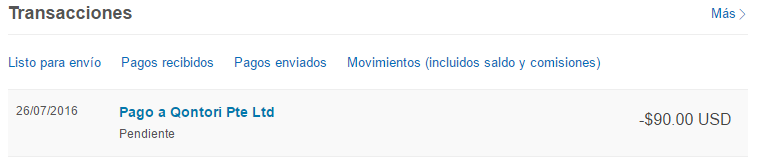 Entonces cuando hago el pago, le pone un estatus de pendiente. Pasada la revisión el pago se realiza exitosamente.
