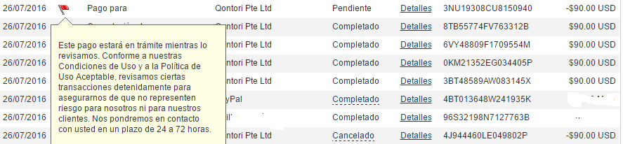 Cuando hago un pago por paypal, paypal se reserva el derecho de revisar, hasta por 72 las operaciones, por cuestiones de seguridad. (Anexo imágen)
