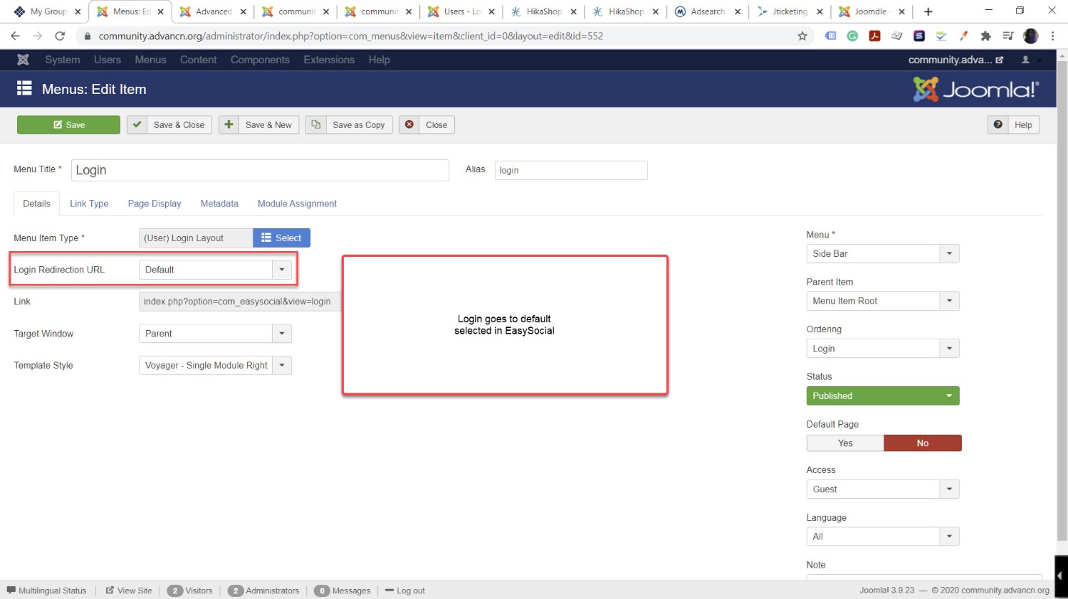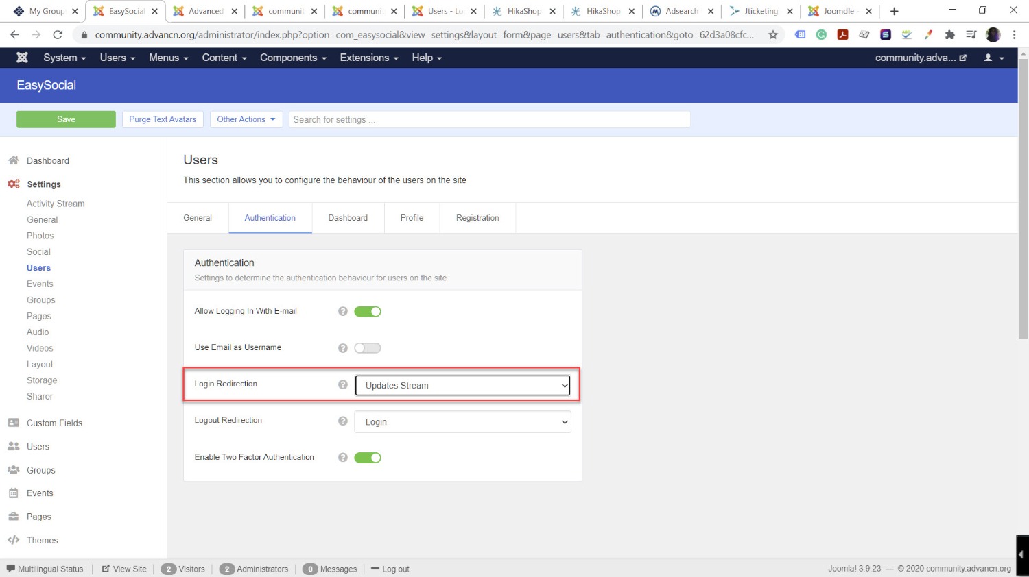 When logging in to my site, my site should redirect using SEF and should go to community.advancn.org/