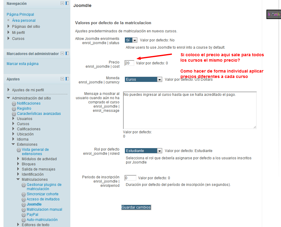 Mi duda es como asigno distintos precios de los cursos en moodle de forma individual