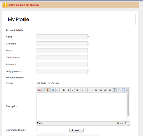 When users try to register on Joomla site they are seeing the following message: Empty solution not allowed.