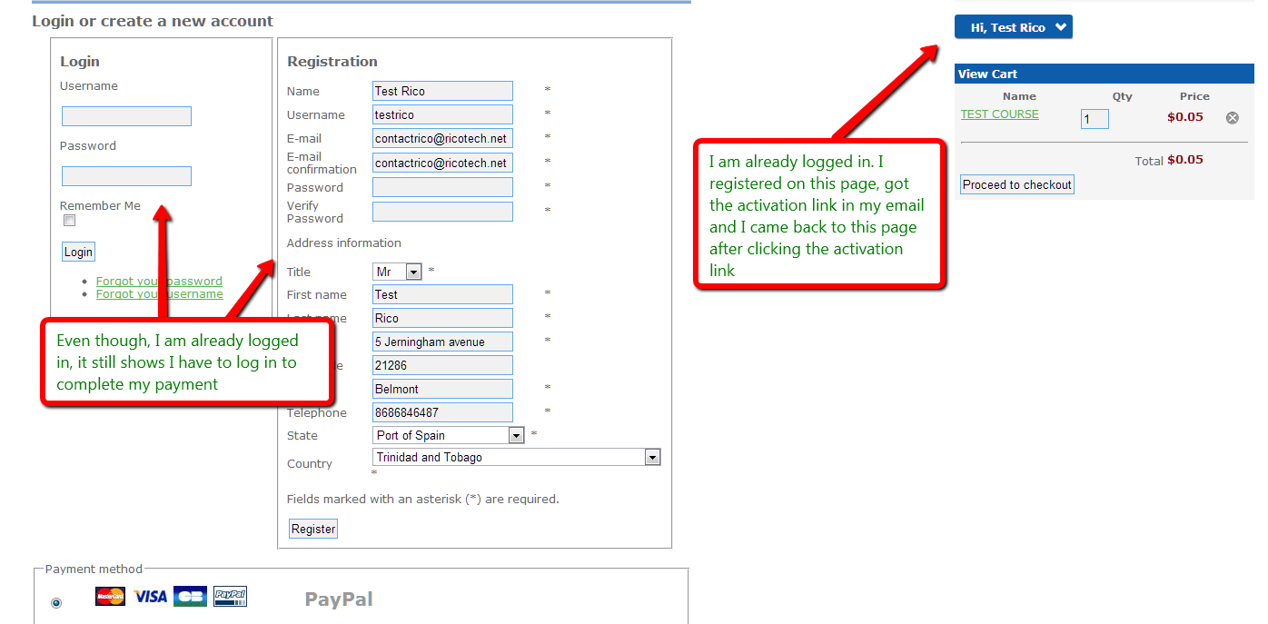 When a person registers on the checkout page of my site, an activation link is sent to their email, when the click on the link, it takes them back to the check out page already logged in, which is cool; however, it appears they still have to log in as they cannot continue